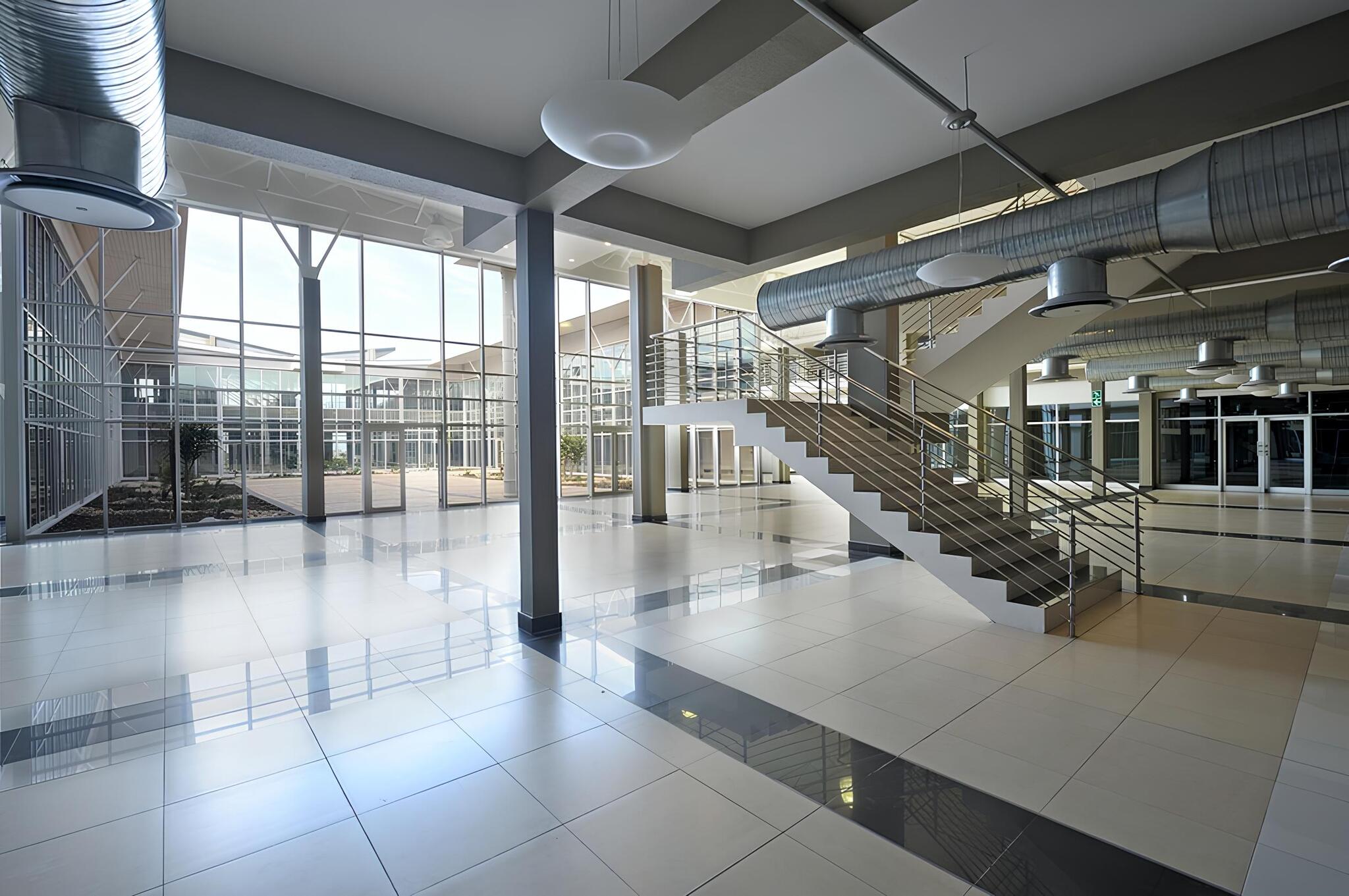 Located within an industrial zone the exterior building expression closely relates to the typical industrial idiom. The interior of the building however reflects a more commercial environment with top-class finishes.